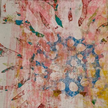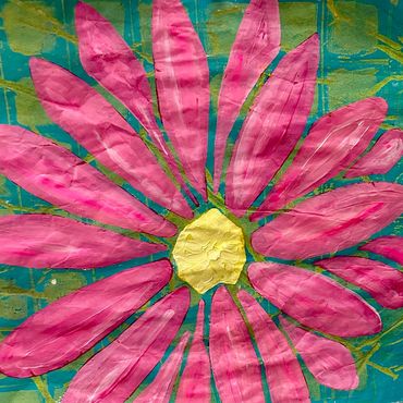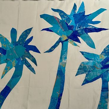 Raised in a family of artists and shaped by over a decade of living in Bermuda, her work reflects a deep sensitivity to color, texture, and place. Using hand-printed papers and acrylic paint, she creates layered collag